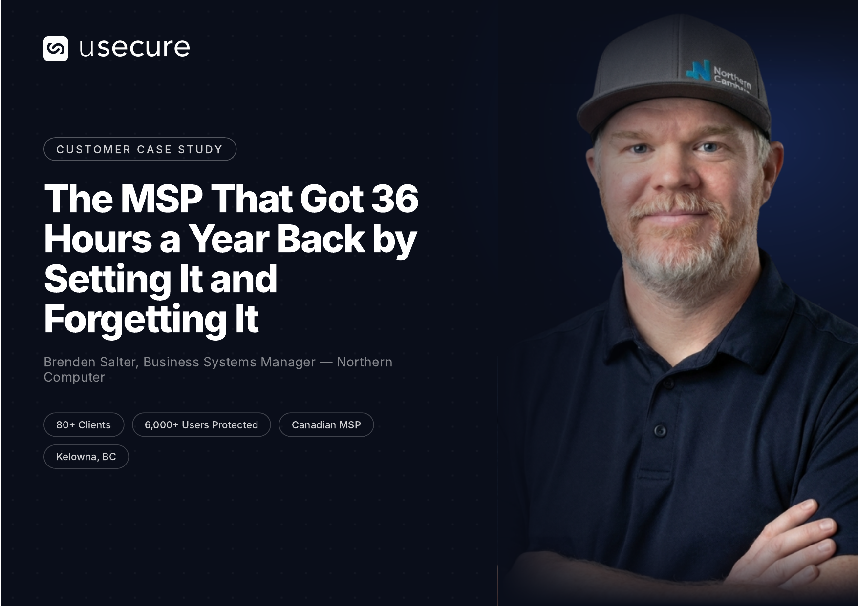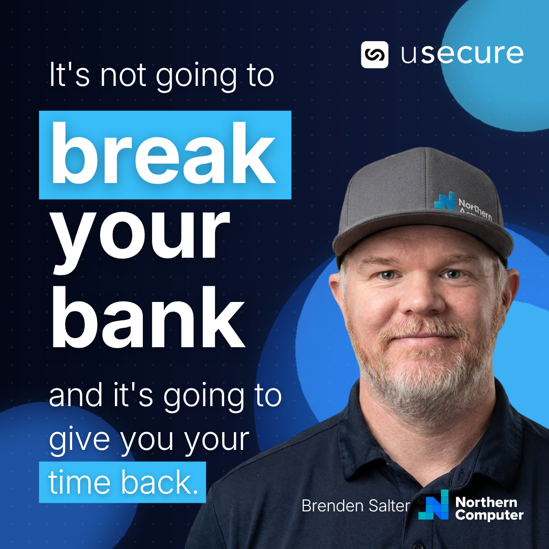 A single 45-minute remote interview turns into a full content system. Click any tile to see every page, every reel, every quote card spread out in full. Real assets from a real customer — Brenden Salter at Northern Computer (a usecure customer).
