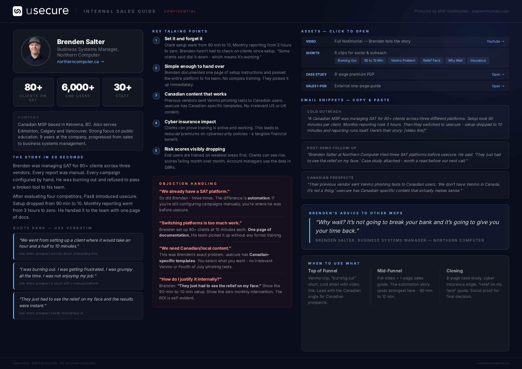 - ✓ Case study PDF, sales one-pager, internal sales guide